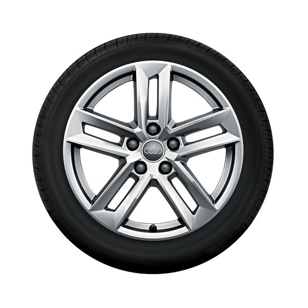 Das sportliche Leichtmetallrad, 5-Parallelspeichen, brillantsilber, mit dem Winterreifen Dunlop SP Winter Sport 4D AO.