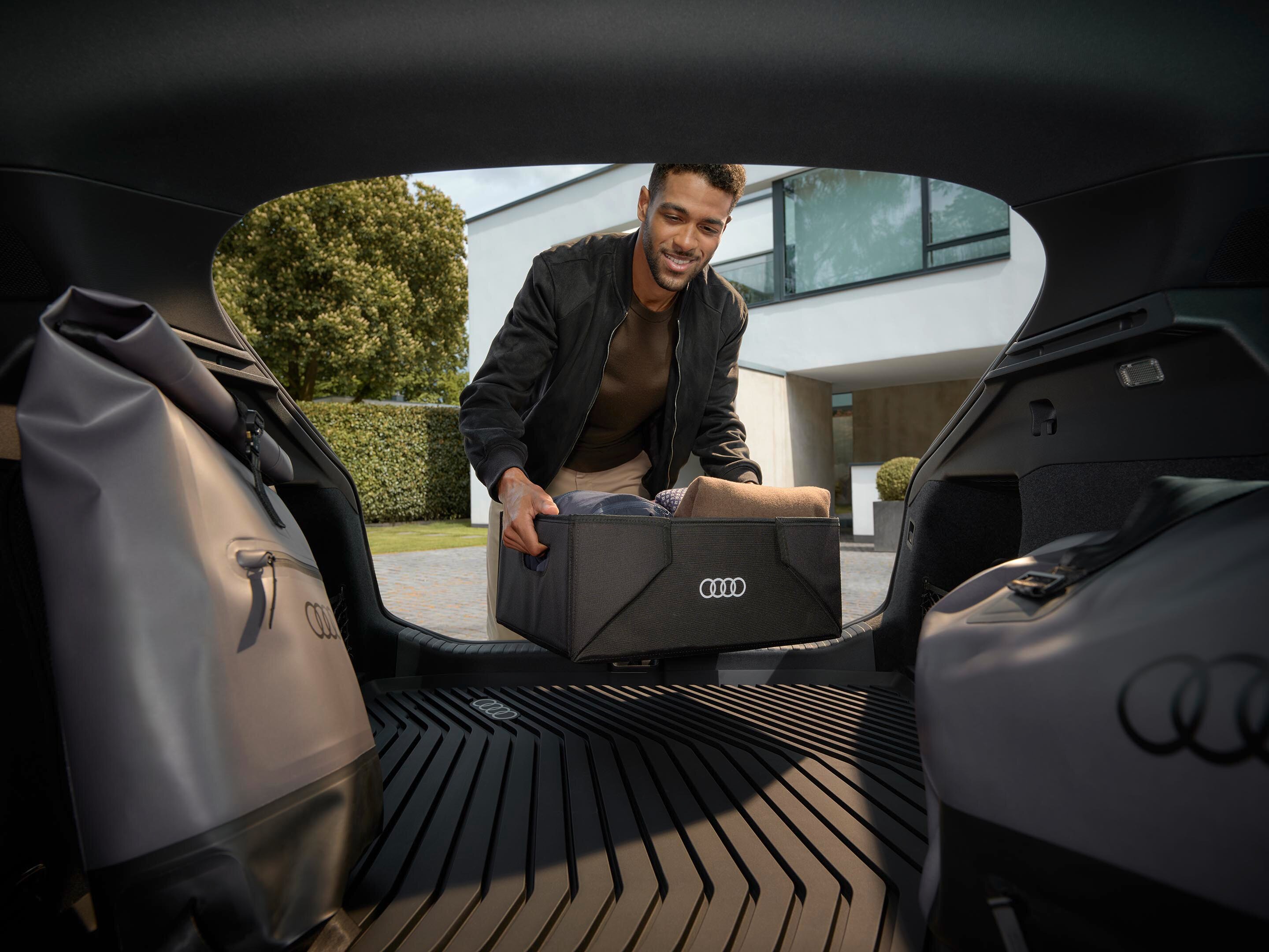 Use the storage options to keep the interior of your Audi neat and tidy. The waste bag and ashtray will keep waste disposal while on the move a neat affair. Carry clothes crumple-free with the help of the clothes hanger, or carry utensils in a handy rear-compartment or backrest pouch.